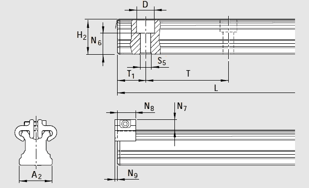 2)對(duì)于規(guī)格20-45,精度N,H和P的滾珠導(dǎo)軌,單段供貨長(zhǎng)度